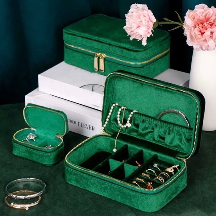 Vintage-geïnspireerde draagbare fluwelen reissieradendoos