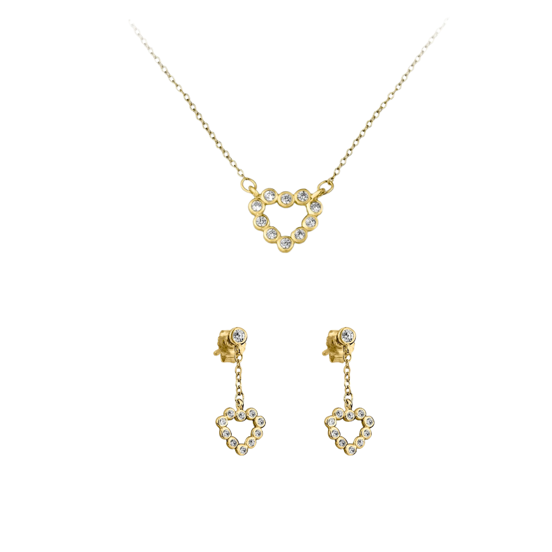 Sieradenset "Adorabile" - hartketting en oorbellen van sterling zilver, verguld of gerhodineerd Productbeschrijving: Ontdek de betoverende sieradenset "Adorabile", bestaande uit...