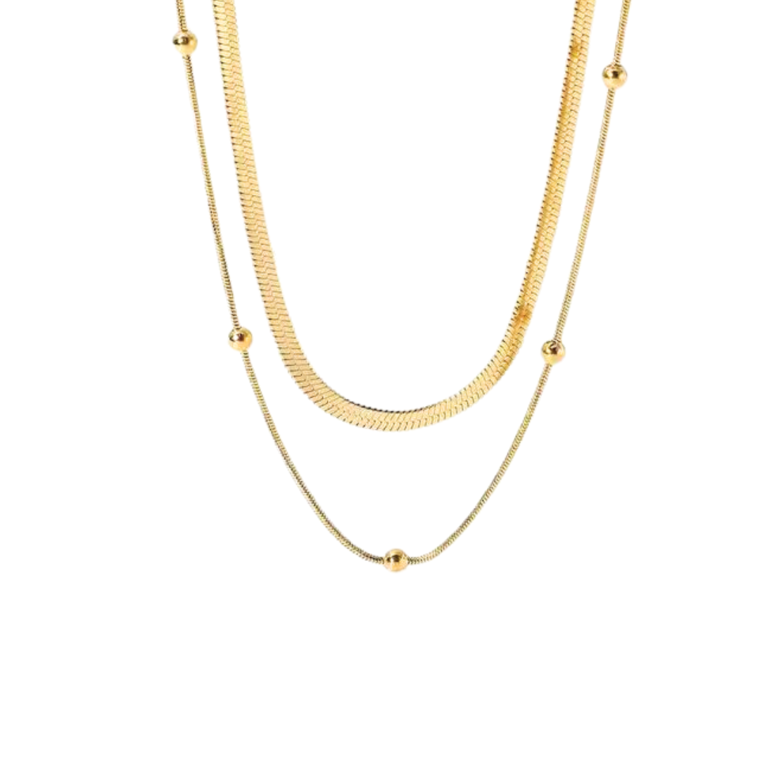 Krijg de perfecte laagjeslook met onze roestvrijstalen OGNI-ketting! De ketting bestaat uit een slangenketting en een ketting met kleine gouden...