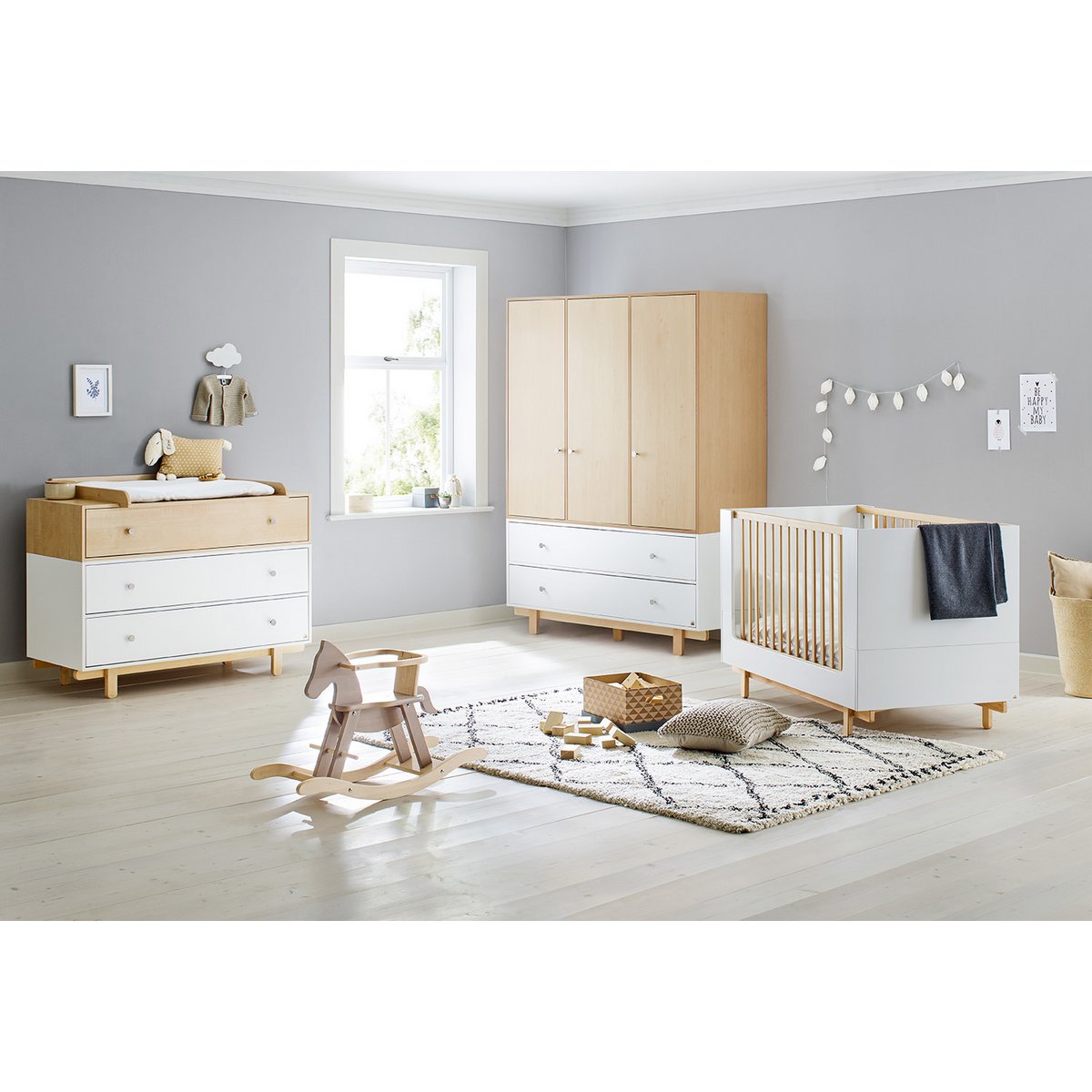 • Decor: esdoorn en effen, wit• 3-delige set met ledikant, breed commode en grote kledingkastKinderbed:• Decor: esdoorn en effen, wit...