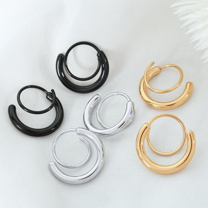 Deze geometrische spiraallijnoorbellen hebben een uniek spiraalvormig ontwerp dat de illusie wekt dat je twee kleine hoepels draagt. Deze oorbellen...