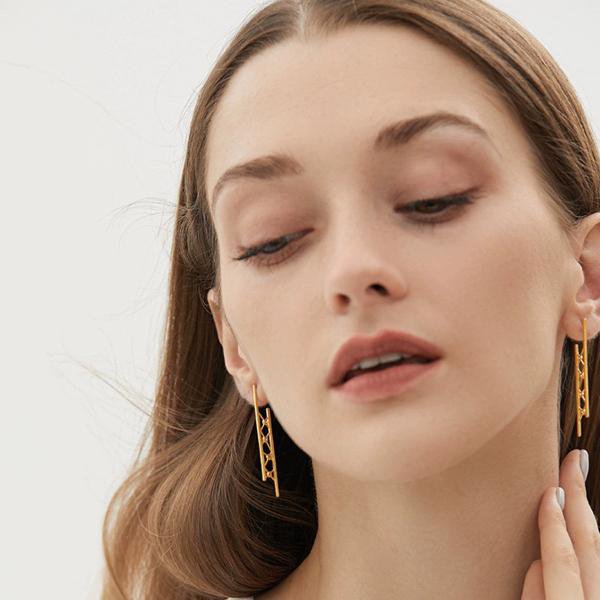 Deze oorbellen belichamen moderne verfijning met hun onderscheidende ontwerp, met een asymmetrische lange lijncontour die moeiteloos de essentie van minimalistische...