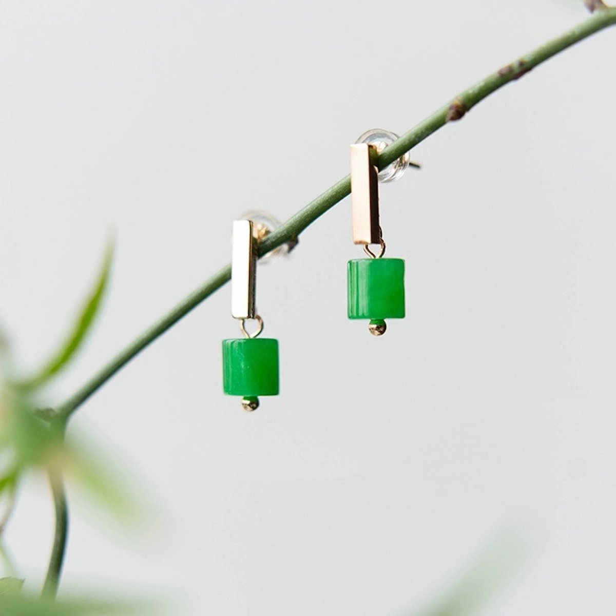 Minimalisme kleine jade bar oorbellen - 18k goud gevuld