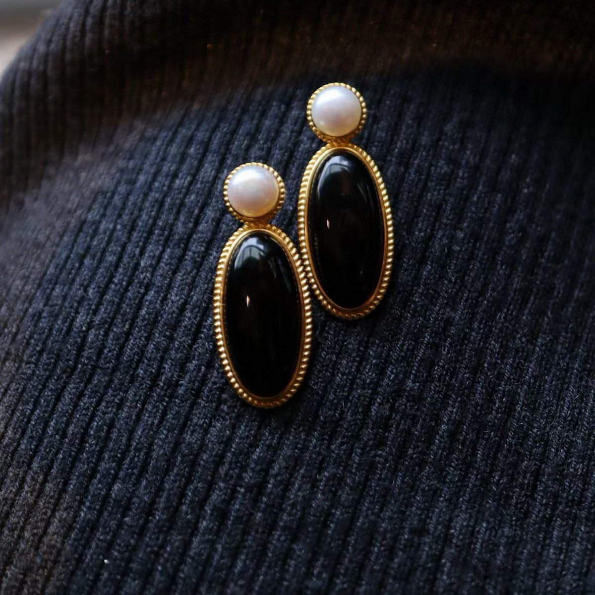 Deze oorbellen zijn gemaakt van echte zwarte onyx en hebben een minimalistische maar moderne vintage look die verfijning naadloos combineert...
