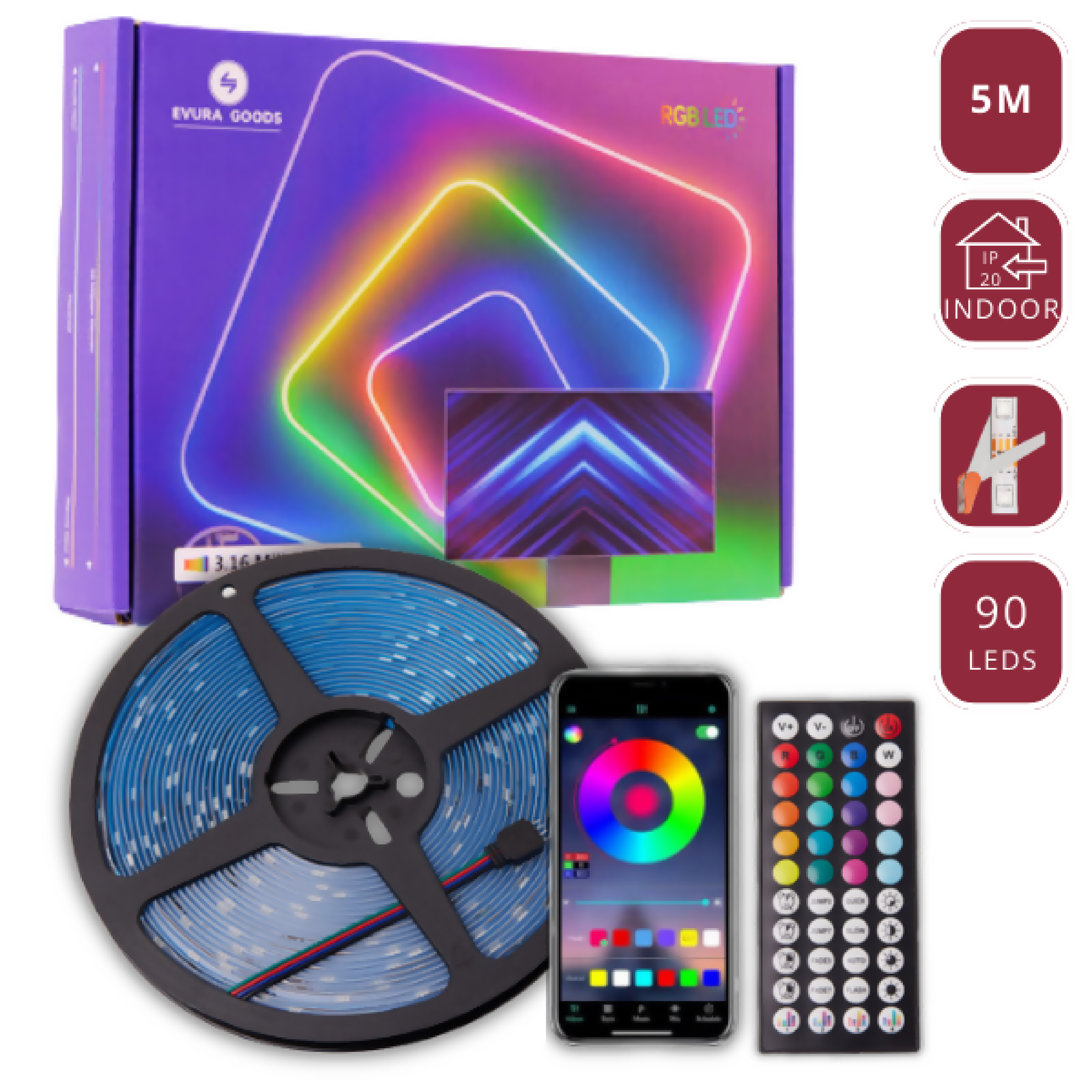 Evura GoodsEvura goods led strip - 5 meter - rgb - met afstandsbediening & telefoon app
