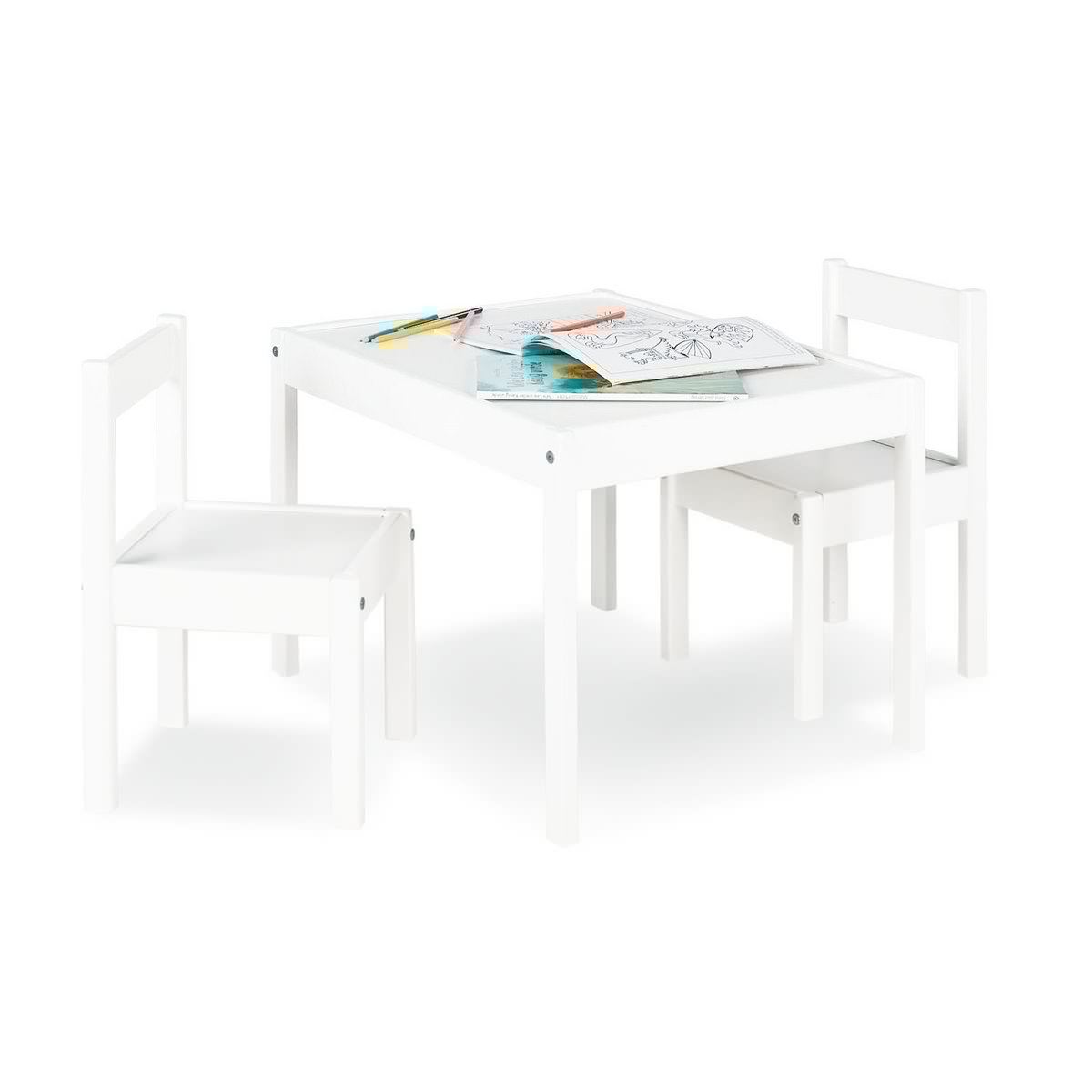• Deels massief hout: grenen, blank gelakt en decor, effen wit• 3-delig: 2 stoelen, 1 tafel• Stoel: B 28 cm,...