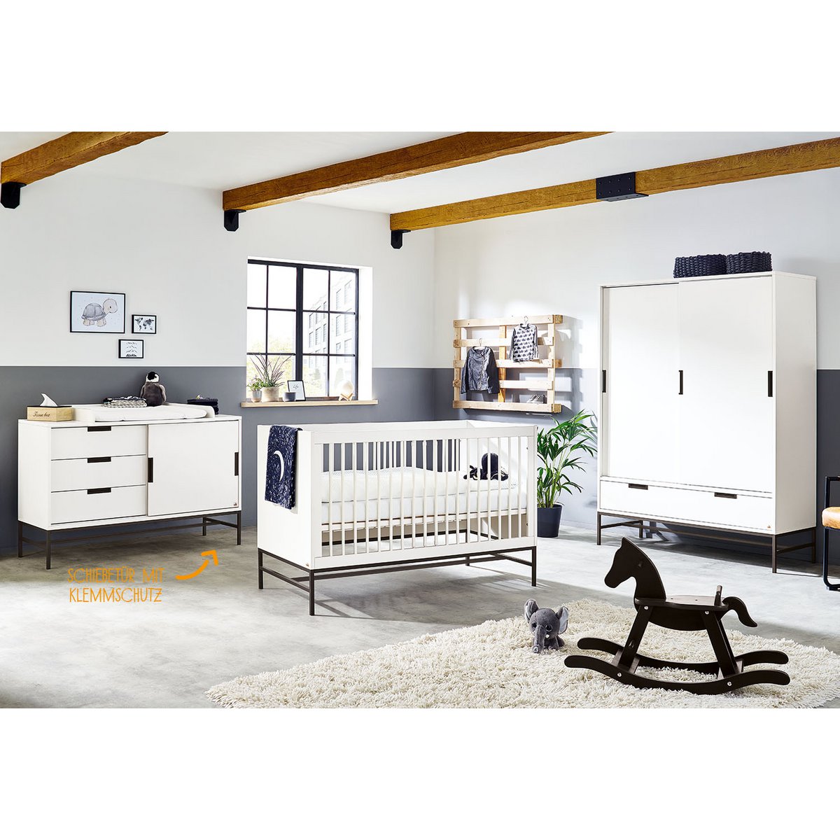 • Decor: uni, wit en staal, antraciet gepoedercoat• 3-delige set met ledikant, extra brede commode en grote kledingkastKinderbed:• Decor: uni,...