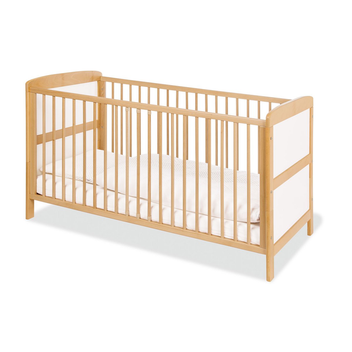 • Vol massief hout: Beuken, onbehandeld• Duidelijk zichtbaar houtpatroon• L 124 cm, B 64 cm, H 85 cm• Matrasmaat 120...