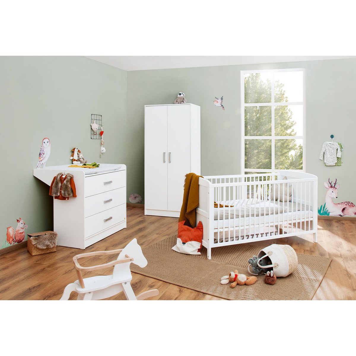• Deels massief hout: effen, wit• 3-delige set met ledikant, brede commode en 2-deurs kledingkastKinderbed:• Deels massief hout: grenen, wit...