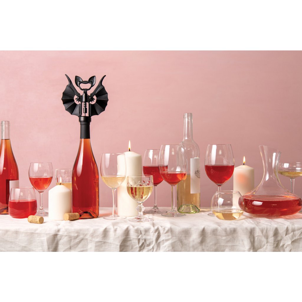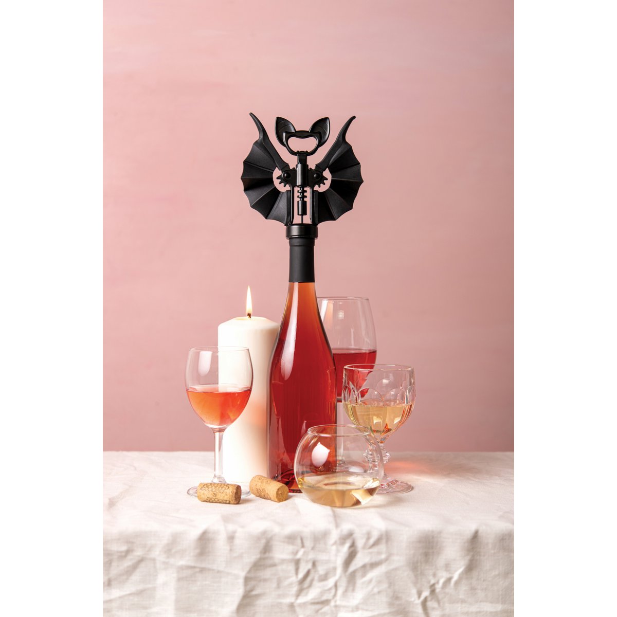 Deze mysterieuze kurkentrekker en flesopener van Ototo heeft de vorm van een vleermuis. Vino klappert met zijn vleugels en landt zo boven op de wijnfles. Hij prikt eenvoudig door de folie heen, zonder te morsen dus maak die fles wijn maar snel open en laat Vino tot rust komen in het donker. Een ideaal house warming cadeautje voor iemand die wel van een bloedrode wijn houdt.